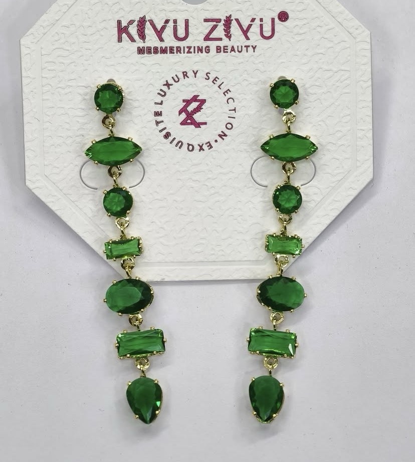 Green emerald long earrings