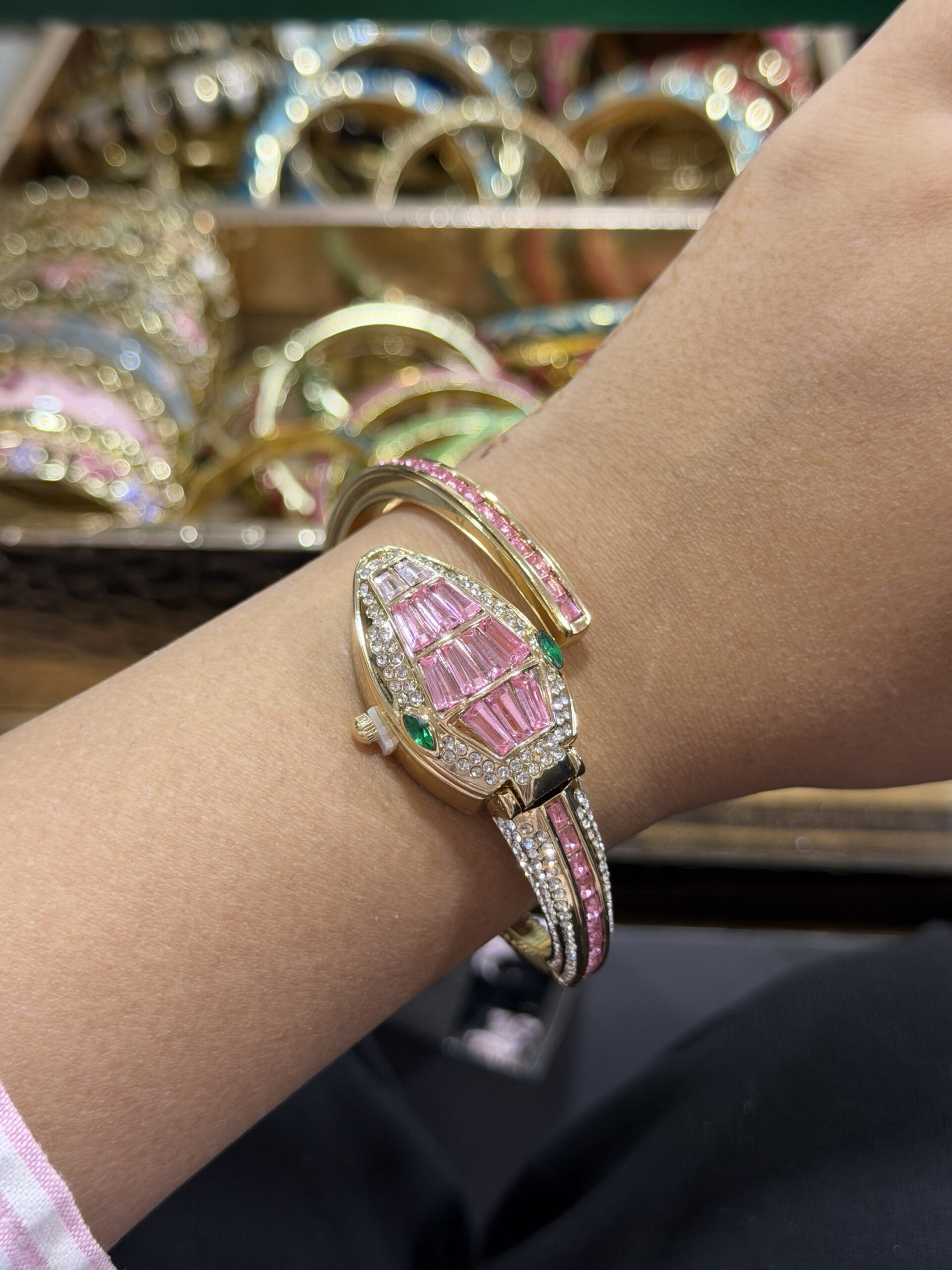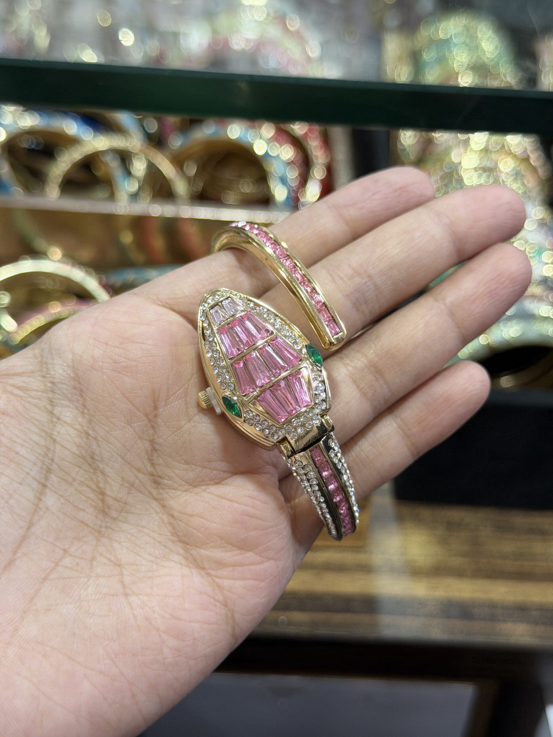 Pink snake diamond watch openable